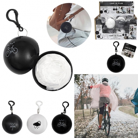 CAPE DE PLUIE BOULE TRANSPORT VELO 127*130 CM Soyez toujours prêt pour les intempéries ! Ultra compact, ce poncho unisexe prend place dans une petite boule de transport.