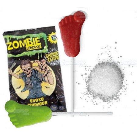 Ce produit se présente sous la forme d'un sachet contenant une sucette en forme de pied et de la poudre effervescente. Les saveurs acidulées et la réaction colorée sur la langue en font une expérience sensorielle unique pour les enfants. La sucette Zombie est adaptée à tous les goûts et ne contient pas de gélatine, pour une consommation sans souci.