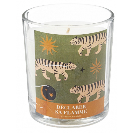 BOUGIE PARFUMEE JOMY LYS BLANC 200 GR Couleur: Blanc Description assortiments: Lys blanc et ambre "Déclarer sa flamme" Dimension produit: D. 8,8 x H. 11 cm Packaging: BOITE IMPRIMEE Durée de combustion : 32 Heures
