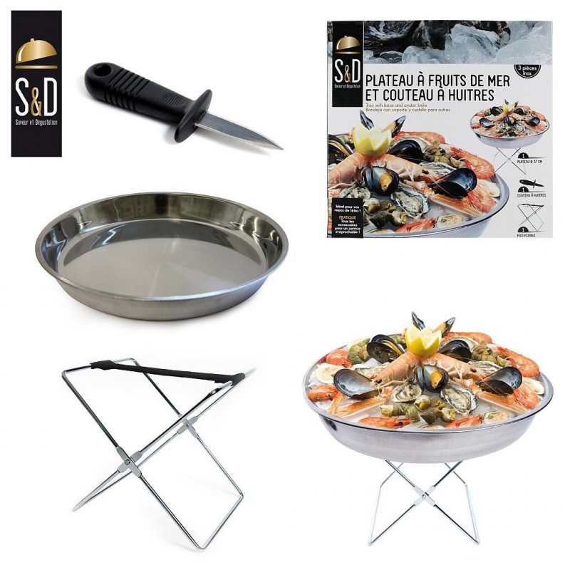 Ce plateau accompagné de son support pliable et d'un couteau à huîtres est astucieux et idéal pour