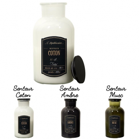 BOUGIE PARFUMEE FIOLE ALCHIMISTE H 20 CM Format du produit 10 x 20.5 x 10 CM Senteur FLEUR DE COTON MUSC BLANC AMBRE