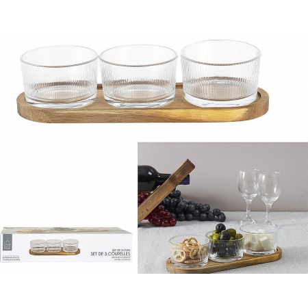 SET APERITIF ACACIA 3 COUPELLES VERRES