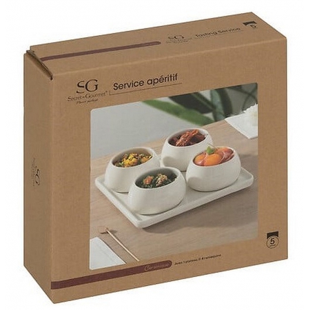 COFFRET APERITIF NORA 5 PIECES CERAMIQUES Dimension produit: D. 21 x H. 6,8 cm Matière: STONEWARE Packaging: BOITE KRAFT IMPRIMEE/STICKER IMPRIME