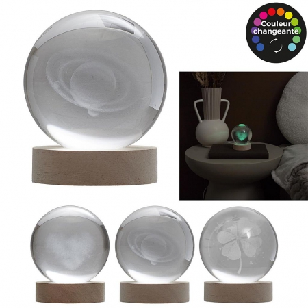 LAMPE EN VERRE GRAVEE EFFET BOULE DE CRISTAL LUMINEUSE