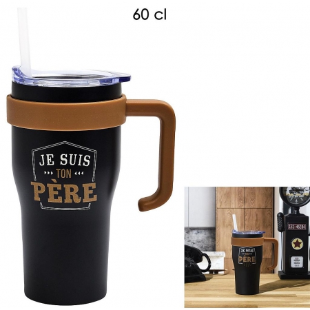 Affichez votre style avec le mug de transport Mini Miami "Je Suis Ton Père" 60 cl. Pratique et généreux, il permet d’emporter une grande quantité de boisson tout en conservant la température grâce à son couvercle hermétique avec paille transparente. Sa large poignée offre une prise en main confortable, idéale pour le bureau ou la maison. Avec son design original et plein de caractère, ce mug combine humour et praticité pour vos pauses café ou boissons fraîches.