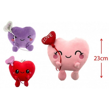PELUCHE COEUR 23 CM 3 COLORIS ASSORTIS