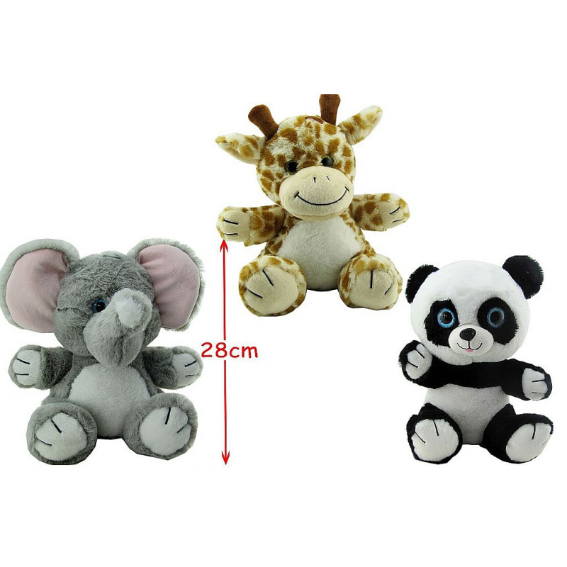 PELUCHE ELEPHANT,PANDA,GIRAFE 28 CM 3 modèles assortis