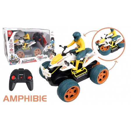 QUAD 41 CM RADIOCOMMANDE ET AMPHIBIE 2.4 GHZ Transformable amphibie, les roues se plient sous le chassis Piles incluses, batterie lithium rechargeable avec cable usb fourni.
